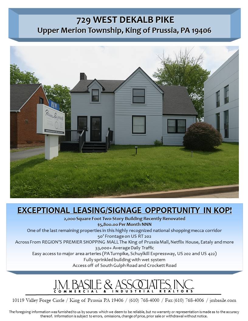 EXCEPTIONAL LEASING/SIGNAGE OPPORTUNITY IN KOP!
